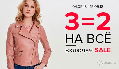В магазине женской одежды «Concept Сlub» в Белгороде до 15 мая 2018 г. проходит акция «3=2» на весь ассортимент, включая раздел Sale – при покупке двух вещей третью Вы получаете в подарок!