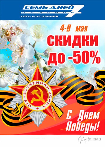 С 4 по 9 мая 2018 г. в сети магазинов парфюмерии, косметики и бытовой химии «7 дней» в Белгороде действуют предпраздничные скидки до 50% на всенародно любимые товары!