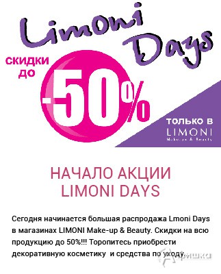 В фирменном магазине косметики «Limoni» в Белгороде сегодня началась акция «Limoni Days» – всю неделю действуют скидки от 10 до 50% практически на всё!