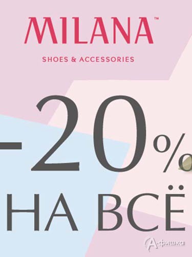 В магазине обуви и аксессуаров «Milana» в Белгороде проходит акция – на весь ассортимент действует скидка 20%!