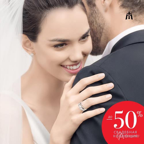 В магазинах «Московского ювелирного завода» проходит акция – до 30 сентября 2018 г. на украшения из свадебной коллекции действуют скидки до 50%!