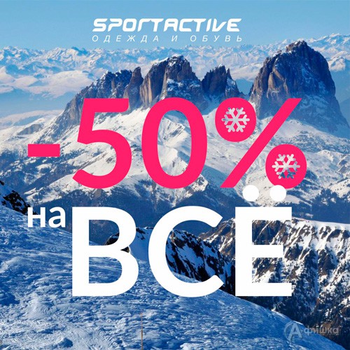 В магазине спортивной одежды и обуви «Sportactive» в Белгороде акция «Цены пополам» – до 21 января 2018 г. на всё скидка 50%!