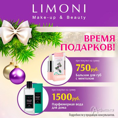 Декабрь – время подарков! В фирменном магазине косметики «Limoni» в Белгороде с 18 по 31 декабря 2017 г. подарок при покупке!