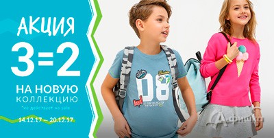 В магазинах детской одежды «Acoola Kids» в Белгороде проходит акция «3=2» на всё из новой коллекции! До 20 декабря 2017 г. три вещи по цене двух!