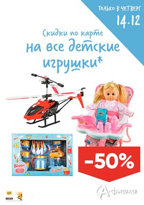 Только 14 декабря 2017 г. в гипермаркетах «Лента» в Белгороде суперакция – скидка 50% на все детские игрушки и наборы для детского творчества по карте «Лента»!