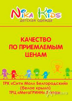 В магазинах детской одежды «Nika Kids» в Белгороде проходит сезонная распродажа! На одежду, бельё и аксессуары для мальчиков и девочек из осенне-зимней коллекции скидки до 50%!
