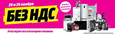 28 и 29 ноября 2017 г. в магазинах бытовой техники и электроники «Media Markt» проходит акция «Любая бытовая техника без НДС» – выгода в размере 18% зачисляется на бонусную карту!
