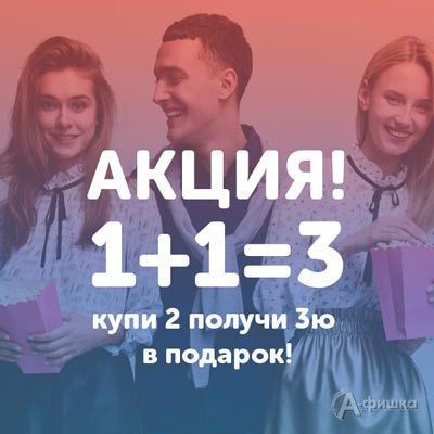 В магазинах молодежной одежды, обуви и аксессуаров «Твоё» только до 20 ноября 2017 г. акция «1+1=3» – при покупке 2-х вещей третья вещь в подарок!