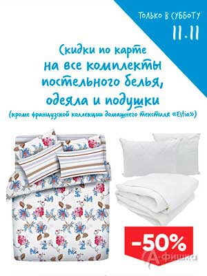 В гипермаркетах «Лента» в Белгороде акция – только 11 ноября 2017 г. скидка 50% на все комплекты постельного белья, подушки и одеяла по карте «Лента»!