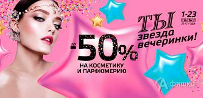 C 1 по 23 ноября 2017 г. в магазине парфюмерии и косметики «Рив Гош» проходит акция «Ты звезда вечеринки» – скидки до 50% на косметику и парфюмерию!