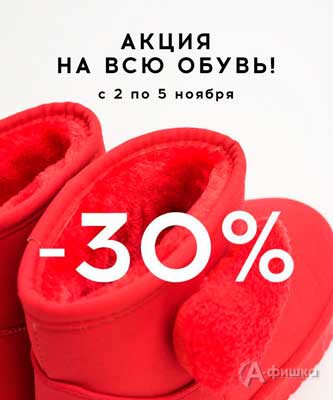 В магазине одежды и аксессуаров «befree» со 2 по 5 ноября 2017 г. акция – скидка 30% на всю обувь из ассортимента магазина!