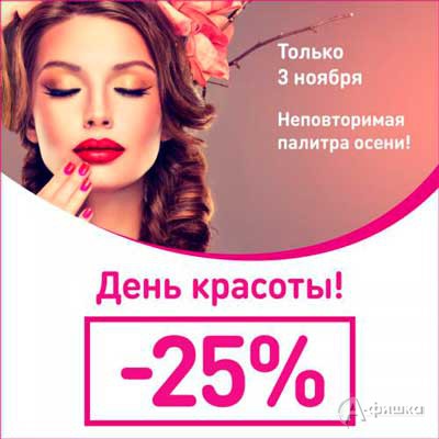Только 3 ноября 2017 г. в сети магазинов «Магнит Косметик» пройдёт акция «День красоты». Скидка 25% на одеколоны, духи, воды, кремы, маски, скрабы для лица и тела, средства для снятия макияжа, декоративную косметику, бижутерию!