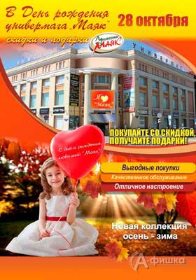 28 октября 2017 г. – день рождения белгородского универмага «Маяк»! Приятные новости для покупателей – покупайте со скидкой, получайте подарки!