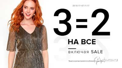 В магазине женской одежды «Concept Сlub» в Белгороде до 7 ноября 2017 г. проходит акция «3=2» на весь ассортимент, включая Sale – три вещи по цене двух!
