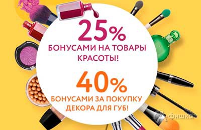 25 октября 2017 г. в сети магазинов косметики, бытовой химии и товаров для дома «Санги Стиль» акция – возвращается 25% бонусами за все товары красоты и 40% бонусами вернется за покупку декора для губ!