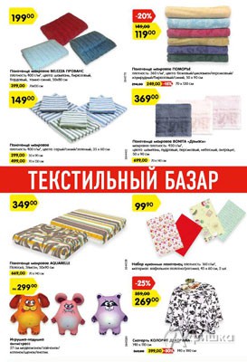 До 1 ноября 2017 г. в гипермаркете «Карусель» в Белгороде проходит текстильный базар – на полотенца, пледы, подушки, одеяла, комплекты постельного белья скидки до 30%!