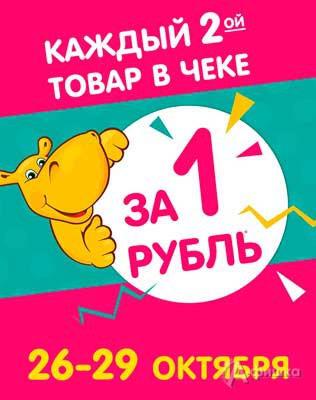 В гипермаркете игрушек «Бегемот» в Белгороде специальное предложение для владельцев клубных карт – до 29 октября 2017 г. купите каждый второй товар в чеке за 1 рубль!