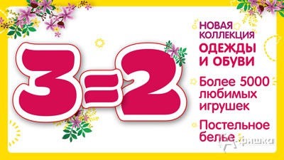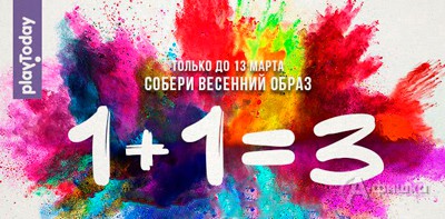 В магазине детской одежды «Play Today» в Белгороде до 13 марта 2017 г. проходит акция «1+1=3. Собери весенний образ» – при покупке трех вещей из коллекции «Весна 2017» для мальчиков и девочек третью вещь, меньшую по стоимости, вы получаете бесплатно!