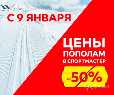 В сети магазинов спортивных товаров «Спортмастер» зимний марафон распродаж продолжается! С 9 января 2017 г. проходит акция «Цены пополам» – скидки до 50%!