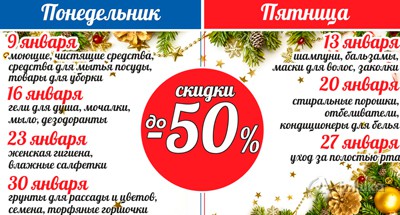 В январе 2017 г. в сети магазинов парфюмерии, косметики и бытовой химии «7 дней» в Белгороде действуют новогодние скидки до 50% на различные группы товаров!