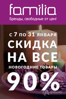 С 7 по 31 января 2017 г. в универмагах распродаж «Фамилия» в Белгороде действует выгодное предложение – скидка 90% на все новогодние товары!
