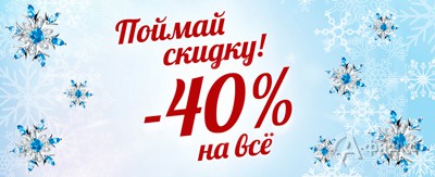 С 28 декабря 2016 г. по 11 января 2017 г. в ювелирном магазине «Кристалл» в Белгороде проходит акция «Поймай скидку» – скидка 40% на весь ассортимент!