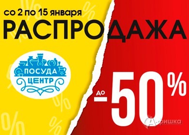 В магазине товаров для дома «Посуда Центр» со 2 по 15 января 2017 г. распродажа – скидки до 50% на товары для отдыха, пикника, праздничного застолья, для сервировки и приготовления, для сна, дома и быта!