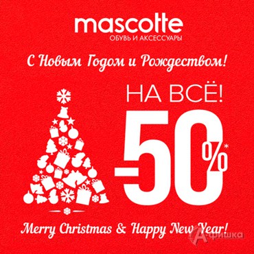 В салонах обуви и аксессуаров «Mascotte» до 18 декабря 2016 г. проходит последняя распродажа в этом году – при покупке двух товаров скидка 50% на всё!
