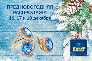 Только 3 дня – 16, 17 и 18 декабря 2016 г. в магазинах ювелирной сети «Карат» в Белгороде проходит предновогодняя распродажа! В эти дни действует скидка 20% на всё!