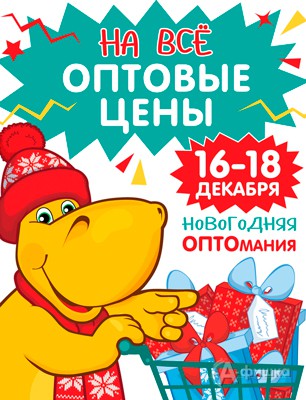 С 16 по 18 декабря 2016 г. в гипермаркете игрушек «Бегемот» пройдёт акция «Новогодняя ОПТОмания» – на весь ассортимент товара для розничных покупателей действуют оптовые цены!