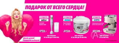 В магазинах бытовой техники и электроники «Media Markt» до 23 ноября 2016 г. проходит акция «Подарок от всего сердца!» – совершите покупку на сумму от 10000 руб. и получите гарантированный подарок!