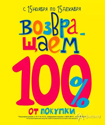 В магазинах подарков и предметов интерьера «Красный Куб» в Белгороде с 15 ноября по 15 декабря 2016 г. проходит акция «Возвращаем 100% от покупки» – совершайте покупку на любую сумму и получайте купон на скидку!