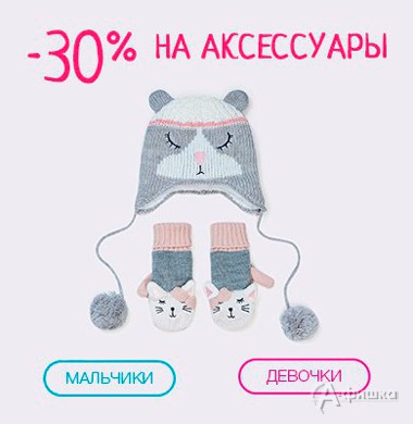 В магазинах модной детской одежды «Acoola Kids» в Белгороде до 21 ноября 2016 г. выгодное предложение – действует скидка 30% на все аксессуары!