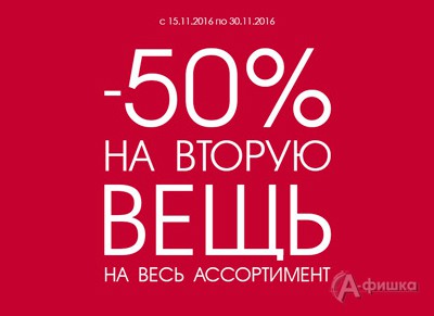 В магазине «Takko Fashion» в Белгороде с 15 по 30 ноября 2016 г. действует предложение – скидка 50% на каждую вторую вещь с наименьшей ценой в чеке! Акция действует на весь ассортимент.