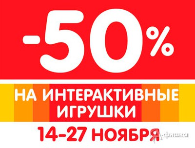 В гипермаркете игрушек «Бегемот» с 14 по 27 ноября 2016 г. действует выгодное предложение – скидка 50% на интерактивные игрушки!