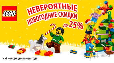 С 4 ноября и до конца 2016 г. в магазине детских товаров «Карапузик» в Белгороде проходит акция – на игрушки Lego невероятные новогодние скидки до 25%!