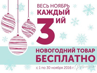 В гипермаркете домашних товаров «Уютерра» весь ноябрь 2016 г. акция – каждый 3-й новогодний товар бесплатно!
