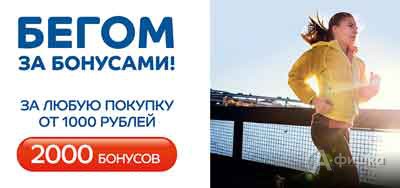 До 14 ноября 2016 г. в сети магазинов спортивных товаров «Спортмастер» проходит акция «Бегом за бонусами!» – совершите любую покупку от 1000 руб. и получите 2000 бонусных балов на свою клубную карту!
