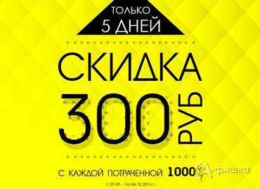 Только 5 дней, с 29 сентября по 4 октября 2016 г. в магазине одежды «Takko Fashion» в Белгороде действует акция – с каждой потраченной 1000 руб. скидка 300 руб.!