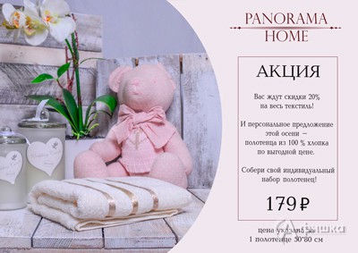 В магазине подарков и предметов интерьера «Panorama Home» в Белгороде действует скидка 20% на весь текстиль – полотенца, скатерти, пледы и многое другое!