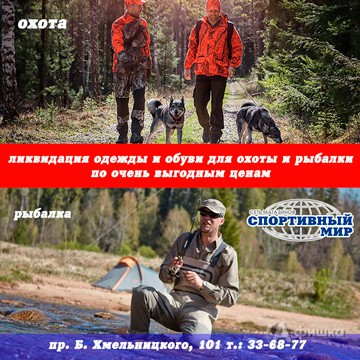 С 23 сентября 2016 г. в магазине «Спортивный мир» проходит тотальная ликвидация одежды и обуви для охоты и рыбалки! Весь товар по ценам от производителя!