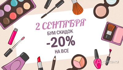 2 сентября 2016 г. в сети магазинов косметики и бытовой химии «Санги Стиль» снова бум скидок! Действует скидка 20% на весь ассортимент, скидки до 50% на зубные пасты и мыло!