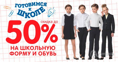 До 6 сентября 2016 г. в детских магазинах «Кораблик» акция «Готовимся к школе» – скидки до 50% на школьную форму и обувь!