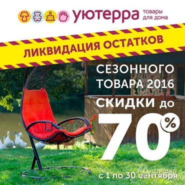 В гипермаркете домашних товаров «Уютерра» с 1 по 30 сентября 2016 г. проходит ликвидация остатков сезонного товара 2016 года – скидки до 70%!