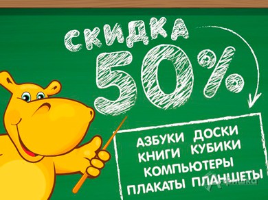 В гипермаркете игрушек «Бегемот» до 11 сентября 2016 г. акция – скидка 50% на азбуки, доски для рисования, книги, кубики, игровые компьютеры и планшеты, обучающие плакаты!