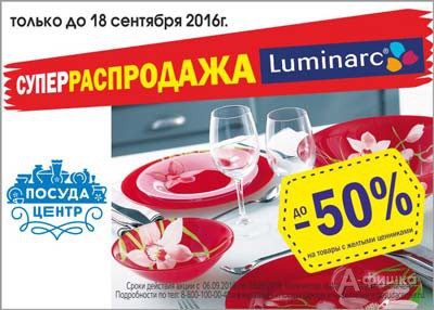 В магазине товаров для дома «Посуда Центр» стартовала распродажа столовой посуды марки «Luminarc» – до 18 сентября 2016 г. скидки до 50%!
