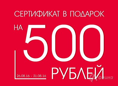 До 31 августа 2016 г. в магазине одежды «Takko Fashion» в Белгороде действует акция – при совершении покупки от 500 руб. сертификат на 500 руб. в подарок!