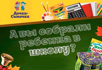 В супермаркетах детских товаров «Дочки-Сыночки» проходит акция – на второй товар из школьной коллекции действует скидка 50%!