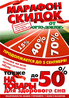 До 5 сентября 2016 г. в салонах «Орто-Доктор» продлится акция «Марафон скдоки»! Вся ортопедическая обувь и товары для здорового сна со скидками до 50%!