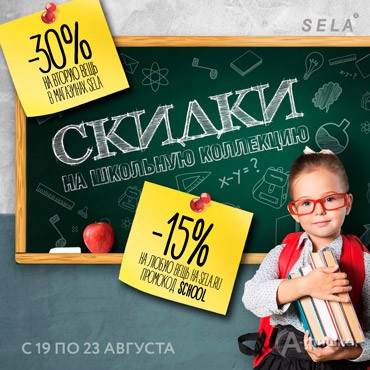 В магазинах одежды «Sela» в Белгороде с 19 по 23 августа 2016 г. акция – скидка 30% на вторую вещь из школьной коллекции!